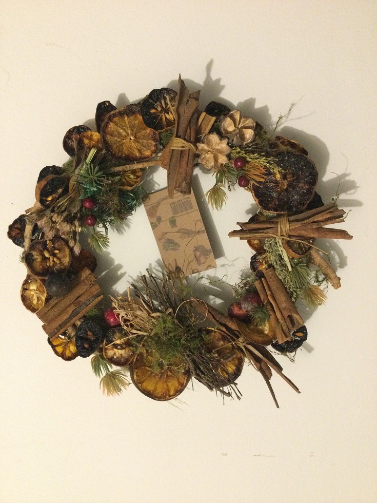 Guirlanda de cipó com limões secos, canela, aniz, cravo e pimenta